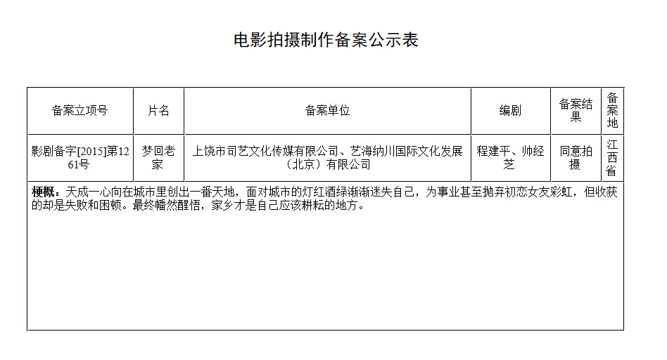 電影《夢(mèng)回老家》籌備中 預(yù)計(jì)九月份婺源取景